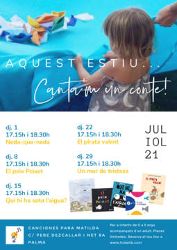 Canta’m un conte!, és un taller que uneix música i literatura infantil a través d’una experiència creativa que implica tot el que està relacionat amb la música: el joc, el cant, el cos, el moviment… Una proposta d’aprenentatge musical basada en la metodologia 'Musica in culla', la qual respecta el potencial innat music-motriu-expressiu present a la primera infància i tracta el llenguatge musical com un element evolutiu que pot contribuir al desenvolupament emotiu i socioafectiu dels nins, fent-ho a través del joc.